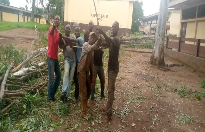 Faute de disposer des moyens financiers conséquents pour recourir aux services des bûcherons professionnels, pour cette tâche à l'évidence périlleuse, le directeur de l’École Normale d'Instituteurs de Dolisie, Joseph Mabi, a fait avec les moyens de bord en mobilisant son monde pour ce qui devenait une action de sauvetage de l'établissement.