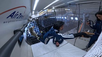 Franceinfo a pu embarquer à bord de l'Airbus A310 Zero G de Novespace,à Mérignac,en Gironde. Sophie Adenot,Thomas Pesquet et les astronautes de l'Agence spatiale européenne sont tous montés à bord de cet appareil lors de leur entraînement de base.